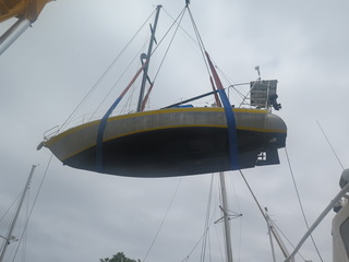 Je plussoie la réponse de Bil. C' est ce qui avait été fait sur mon Loisir 7.30 , mais c' était un quillard. Sur le Trisbal, il faut qu' il y ai la place pour pouvoir replier la pelle de safran pour l' échouage.