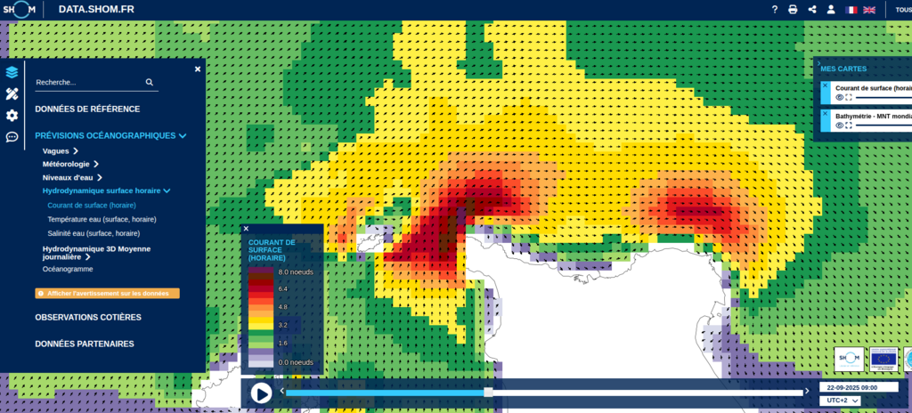 napo7:Sur le site data.shom.fr il y a les prévisions de courant, pour moi il s'agit bien des données calculées avec le coefficient de marée applicable et non pas les "simples" données que l'on retrouve dans les almanachs ?·le 21 sept. 08:58