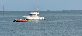 hier lundi 26 le voilier etait toujours coulé et visible et accessible à basse mer, cette semaine le coef diminue donc plus difficile d'accès pour opération de renflouage. Il n'ont pas l'air pressé de renflouer le navire.