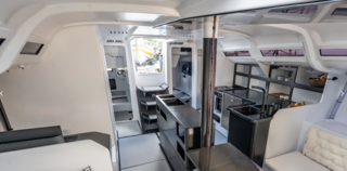 Mais en faire des bateaux de croisière ça semble vraiment compliqué. Je crois que les scows de croisière sont une mode qui a l’avantage d’optimiser les intérieurs par leur coté très carré, mais qui va très vite passer. Ce sont des carènes très inconfortables, qui ne présentent pas d’intérêt particulier si on reste à la vitesse de carène. Le marketing qui consiste à faire des bateaux de croisière qui ressemblent aux bateaux de course a fait son temps.