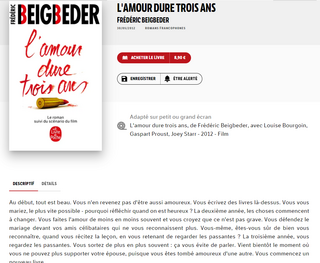 Comme l'a écrit Frédéric Beigbeder l'amour dure 3 ans ! ... Ah oui c'est peu !