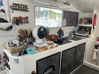 tikipat:À bord du cata on a tout ce qu il faut pour une vie agréable à bord , moins que chez nous mais bien . Et comme ça gîte pas on est nickel pour la cuisine en mer . ·le 29 oct. 12:19