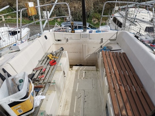 Surtout pas du bois à lasurer, les lattes de cockpit baignent en permanence, le teck et l'iroko sont naturellement imputrescibles, et de vont pas fendre et noircir comme le chêne.