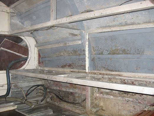 On voit bien sur la photo la partie (gauche) ou était stocké le lest, 2 barres en travers. Je pourrais éventuellement faire 4 compartiments indépendants (ou 8 pour plus de manœuvrabilité dans le cas de caisses amovibles....)