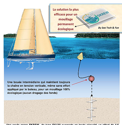 1 corps-mort unique +12m de chaine+ bouee + 2m aussiere pris sur la chaine.