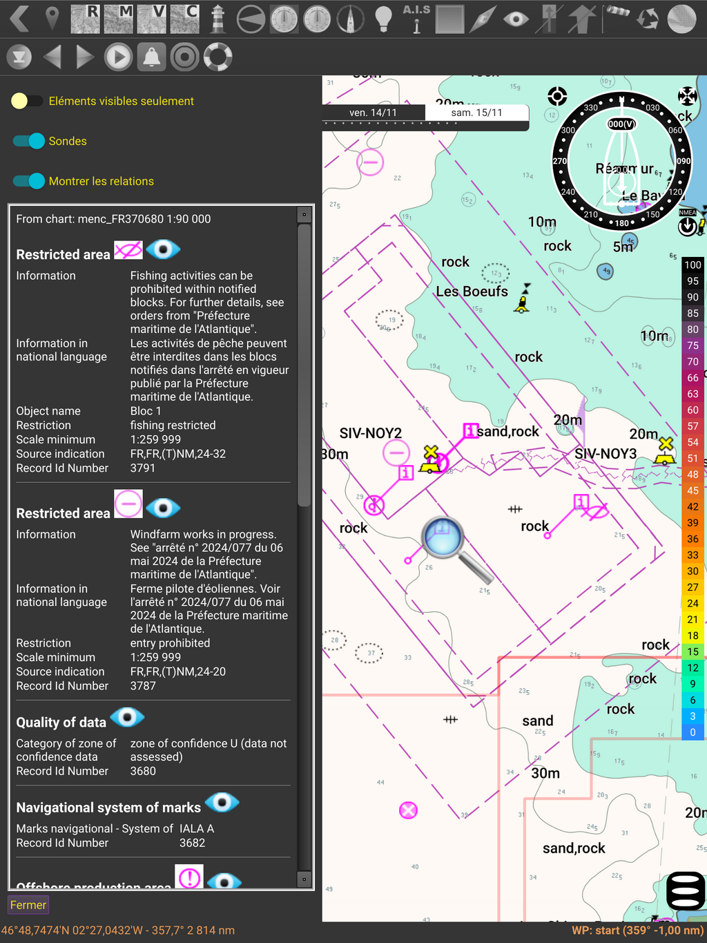 Bonjour, au large de Noirmoutier la version Meltemus (qtVlm) des cartes SHOM.