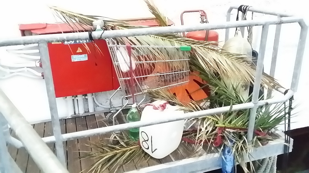 autre merde que j'ai évité de justesse; après m'être fait secouer toute la nuit entre Barbate et Tarifa j'ai rencontré, en fin de matinée je crois, deux grandes galettes d'environ 10 m de diamètre de cordages emmêlés. toute cette merde dérivait gentiment pendant que moi je me battais contre vent et courants pour essayer d''atteindre Tarifa. J'en ai même oublié de lancer un message de sécurité à la vhf.