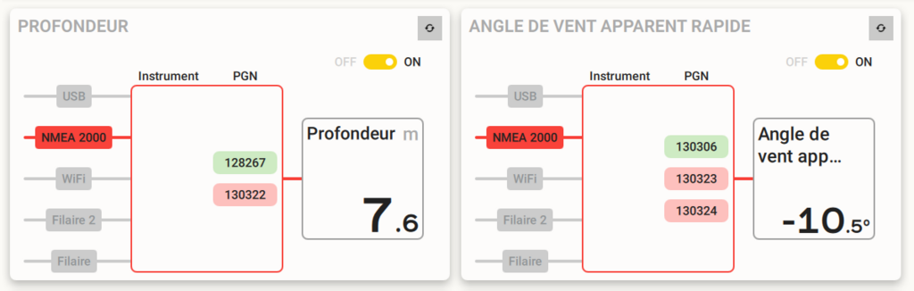 Jef-370:Merci pour votre réponse. Je vois effectivement que PGN 128259 = Speed. En navigation, "l'ancienne" instrumentation Simrad affiche la vitesse du loch (environ 10% de moins que la vitesse SOG indiquée par le GPS), mais ces informations n'arrivent pas jusqu'au NKE (?) ·le 06 mai 10:28