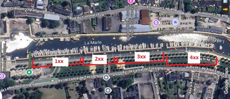 en bougeant dans les ports un peu hors juillet aout parfois il n y a pas de service de rade mais uniquement des contacts par radio ou on entend ''allez place J45'', on trouve les petits plans avec les lettres des pontons mais pas la numerotation, si vous connaissez les numeros des places ces ports pourriez vous les indiquer, ou a la limite deja savoir cote pair ou impair peut aider.
