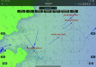 viking35:Ils étaient en course depuis plus d'un mille, la ligne de départ était déjà loin et étaient au largue. Ce que je ne comprend pas est pourquoi la quille de Holvim n'était pas inclinée au vent alors que leur bord était long. . ·le 11 août 13:08