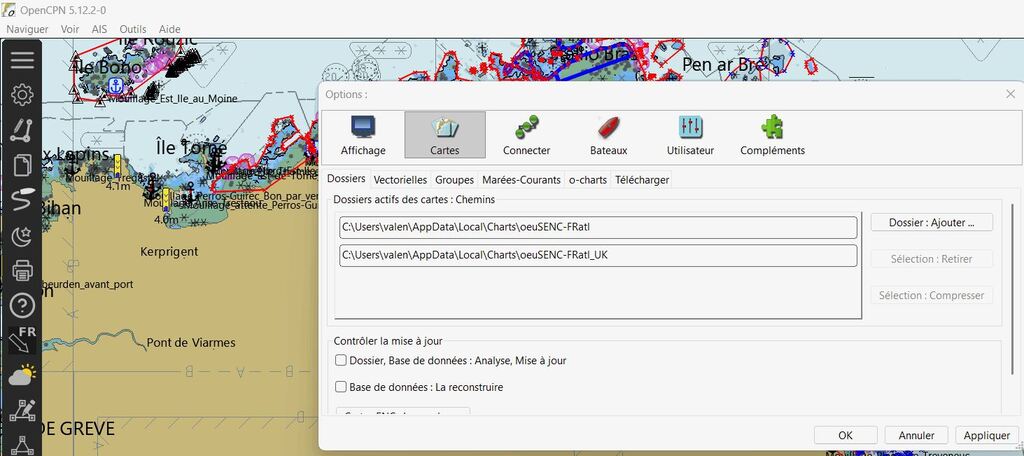 Si j'ai un problème de cartes sur OpenCPN, mon première réflexe est :