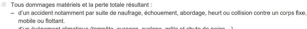 2)ma police couvre "... accident par suite de ... heurt ou collision contre un corps fixe, MOBILE, ou flottant". Jusqu'ici tout va bien. Mais: