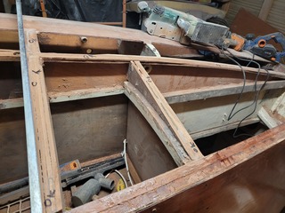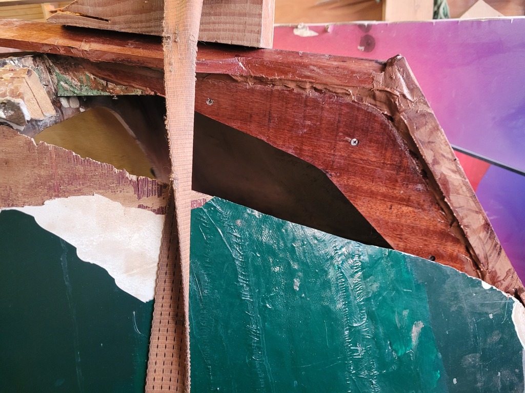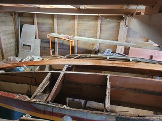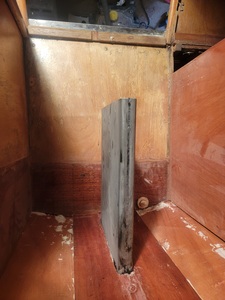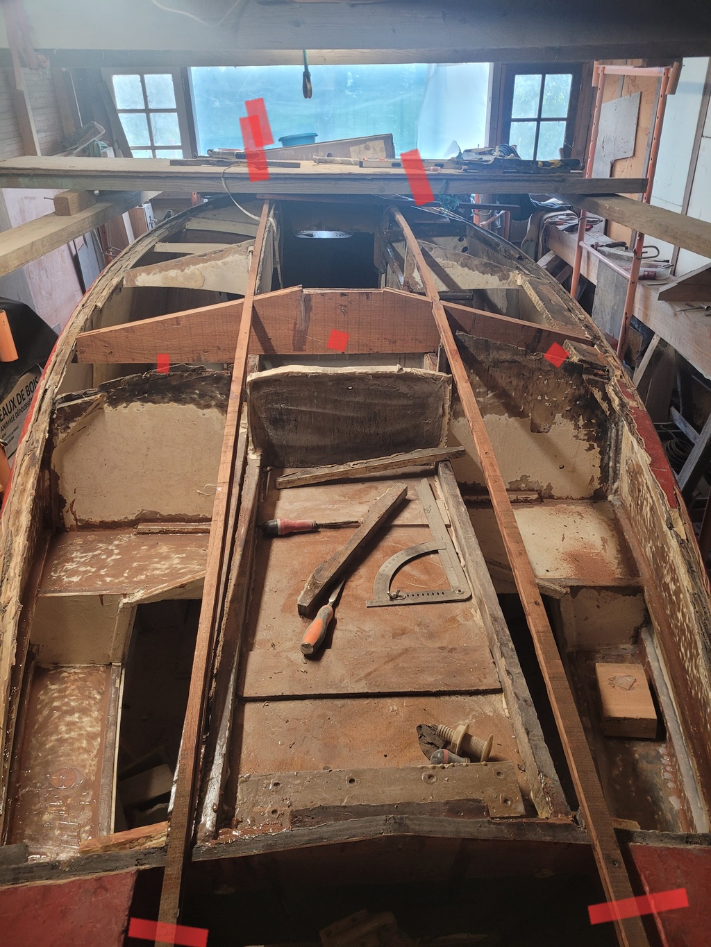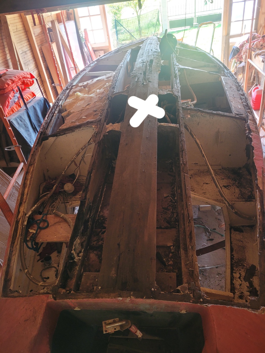 Je me suis empressé à retirer toute cette mousse expansée qui faisait pourrir le bois. Je peux vous jurer que j'étais outré, Je n'avais pas compris que ça servait de caisson de flottaison.