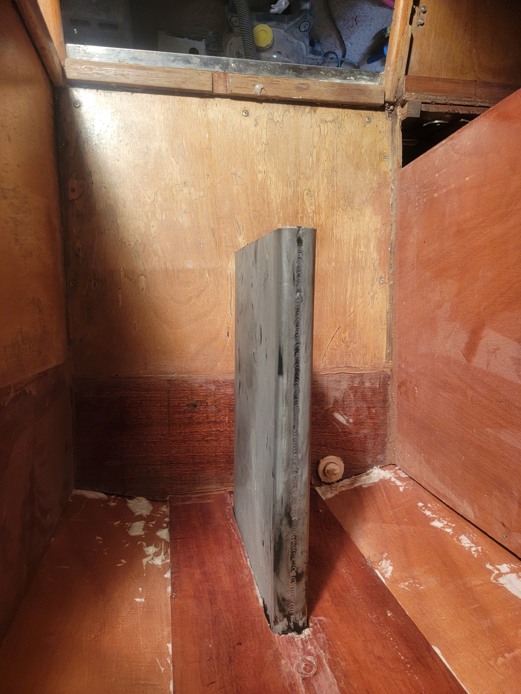 À cet endroit il y avait la vieille pompe de cale bien sûr que j'avais remplacé par une neuve.
