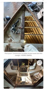 J'ai bien vu que ce n'était pas une modification après la construction du bateau car les bois de bordée faut bien jusqu'au bout et pour le rouf on voit bien que c'est de l'assemblage d'origine.
