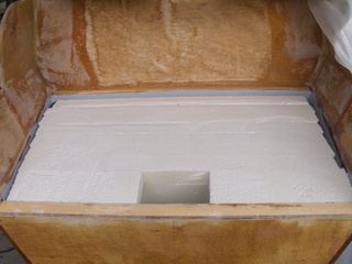 Pour rendre les blocs de mousse extractibles, il faut les enfermer sous un "capot" dont la fixation devra être suffisamment robuste pour s'opposer à la poussée de la mousse.
