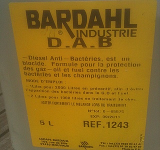 Le produit que je mets c'est du Bardahl, Diesel Anti Bactéries réf 1243, en bidon de 5l