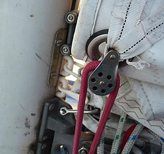 Gv d'environ 20 m2, ris "automatique". Étant nul en matelotage, j'ai fixé une Poulie d'environ 30 mm de réa par une manille à l'oeillet. Idem sur le guindant. Résultat pas terrible. Car il y a en plus les reas sur la Bôme. Je pensais améliorer le dispositif par rapport aux passages dans les oeillets, mais il y a trop de frottements. Une idée pour améliorer tout ça ? Merci