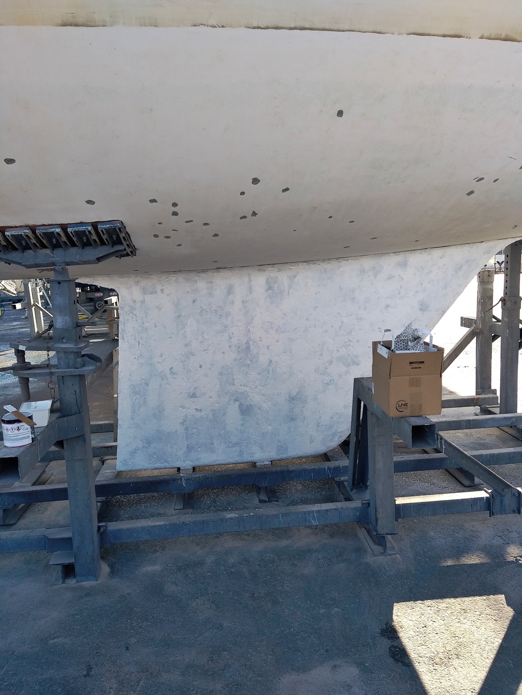 Vidéo de notre quille après sablage et époxy (avant mastic)
