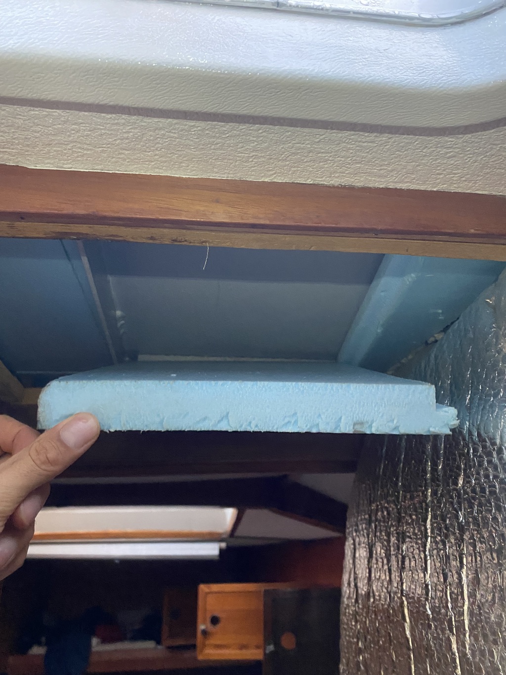 Je pensais refaire l’isolation avec de l’ArmaFlex, mais je bloque encore sur la manière d’isoler correctement les barrots tout en permettant d’y fixer les vaigrages par la suite.