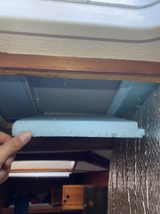Pour la coque j'ai mis dans tous les placards ou endroits fermés (qui sont quand même percés pour la ventilation) du styrodur en 20 mm jusqu'à un peu au dessus de la flottaison.