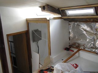 Travaillé aussi la ventilation,cabine avant via la soute à voile qui fait boîte dorade pour la poussière,deux manches à air dans le carré avec boîte dorade et extracteur solaire à l'arrière,si on néglige ce poste on n'a pas d'élimination de la condensation.