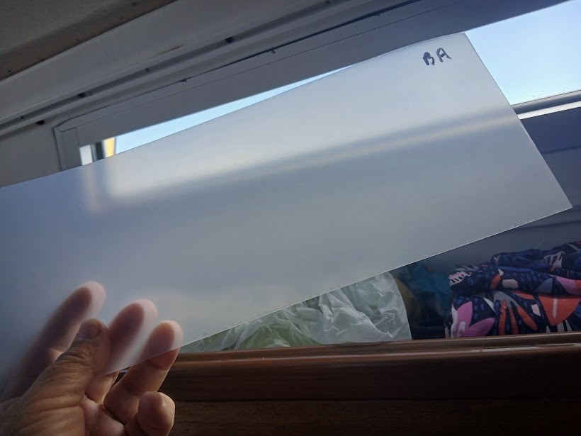 Pourtant, nous avons eu de la condensation sur les hublots (entourages alus). Sur les conseils de copains, en attendant de trouver mieux, on y a mis du film étirable, ce qui a énormément amélioré les choses. Du coup, cette année, on y a mis une feuille de polycarbonate très fine et parfaitement transparente, qui tient avec du sotch double face.