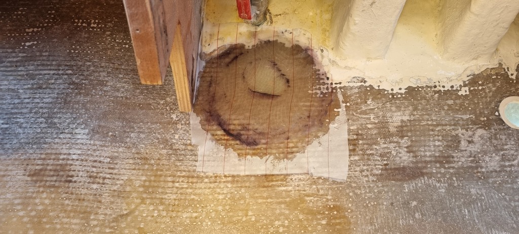 Un endroit identifié comme malade (Voir le message plus haut ou je ponçais le dessous) car noir était aussi malade depuis l'intérieur. Il y a un maintenant un trou mais au moins plus de zone noire donc délaminée avec humidité stagnante et destructrice. J'ai traité les zones noires comme des cancers à retirer même si ça me fera plus de strat à faire ensuite.