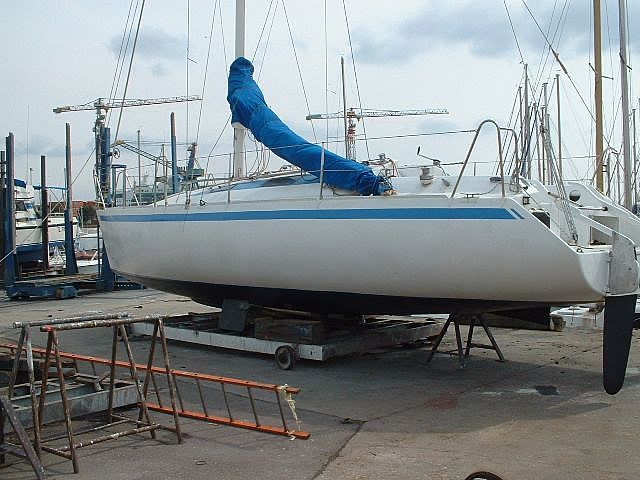 actuel propriétaire du proto, je peux vous confirmer que ce bateau sort de l'ordinaire. il fait environ 3 T à vide et j'essaie de naviguer en restant assez léger. son comportement est très sain, dans le principal coup de vent que j'ai subi dans le golfe de gascogne, il bouchonnait à sec de toile , safrans et dérives relevés à 70/80 ° du vent. Dès que l'on abat et que le vent tourne autour de 20 noeuds, il dépasse régulièrement les 10 nds.Il a déjà traversé l'atlantique avec son architecte constructeur et est prêt pour le refaire. Confort spartiate type bateau en CP des années 80. Il est idéal pour naviguer au large à 2 ou 3. Je le vends pour cause familiale. Attention à l'échouage, le fond doit être nickel. Maneuvrabilité moyenne avec le HB si vent fort.