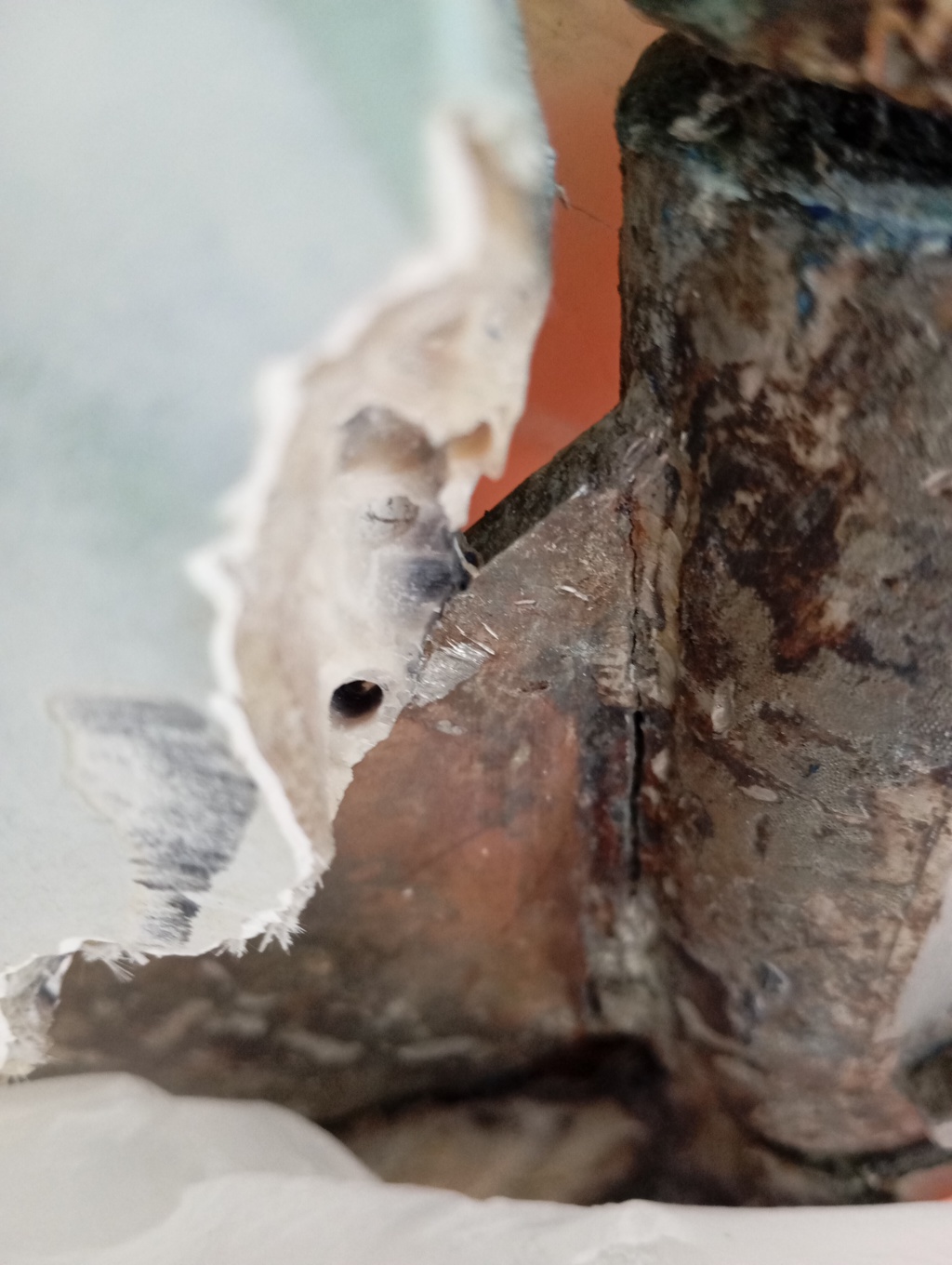 Et sur le côté tribord , le moins attaqué , je découvre une fellure 😱