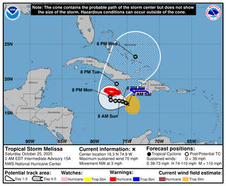 Les dernières prévisions très pessimistes... Melissa se creuse, bientôt au stade d'ouragan majeur.