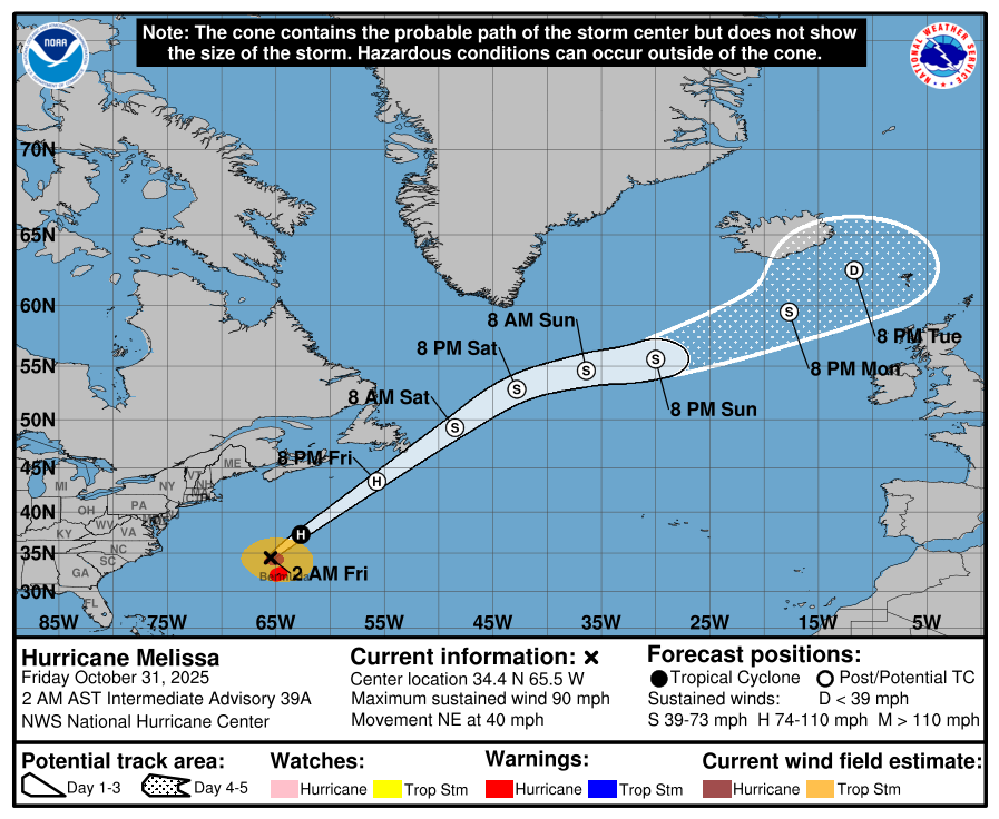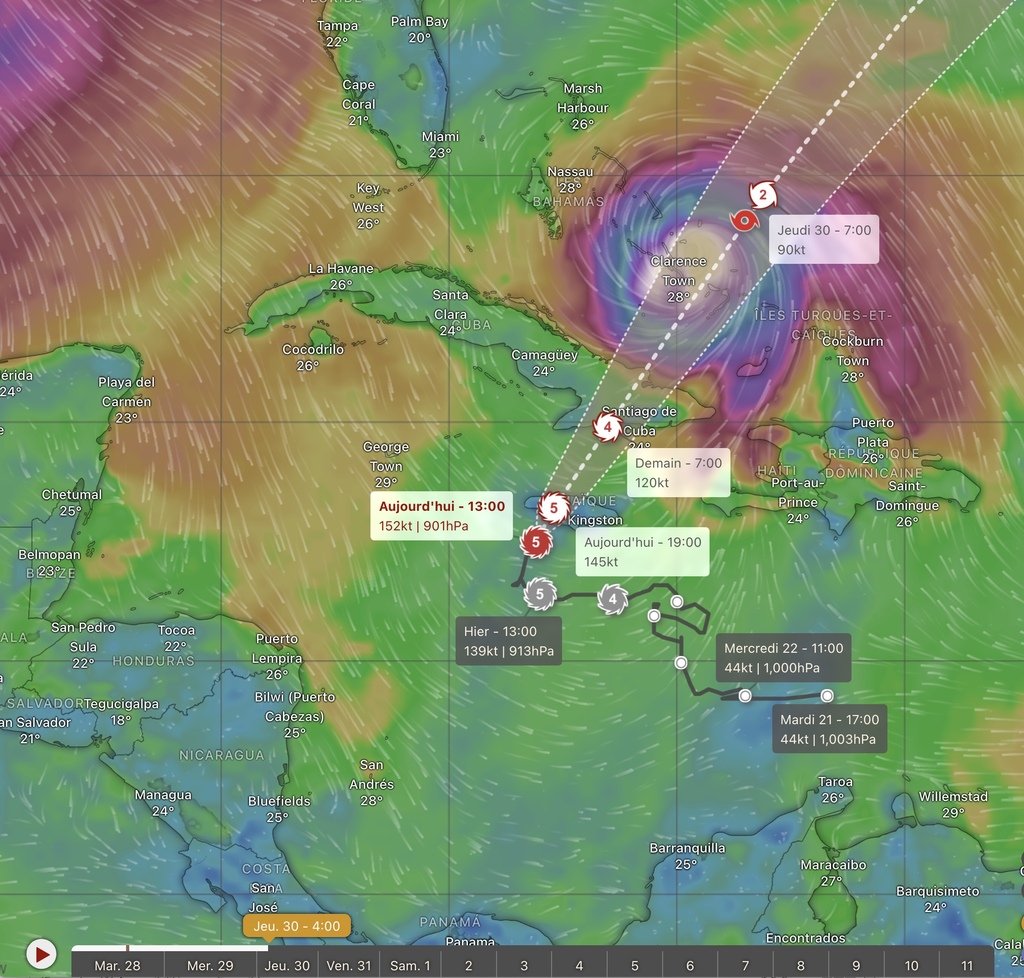 Pas glop ..pour la Jamaique,melissa arrive par le SE et va faire le tour de l’ile pendant 6 jours…😱 puis se diriger vers Cuba et bahamas..