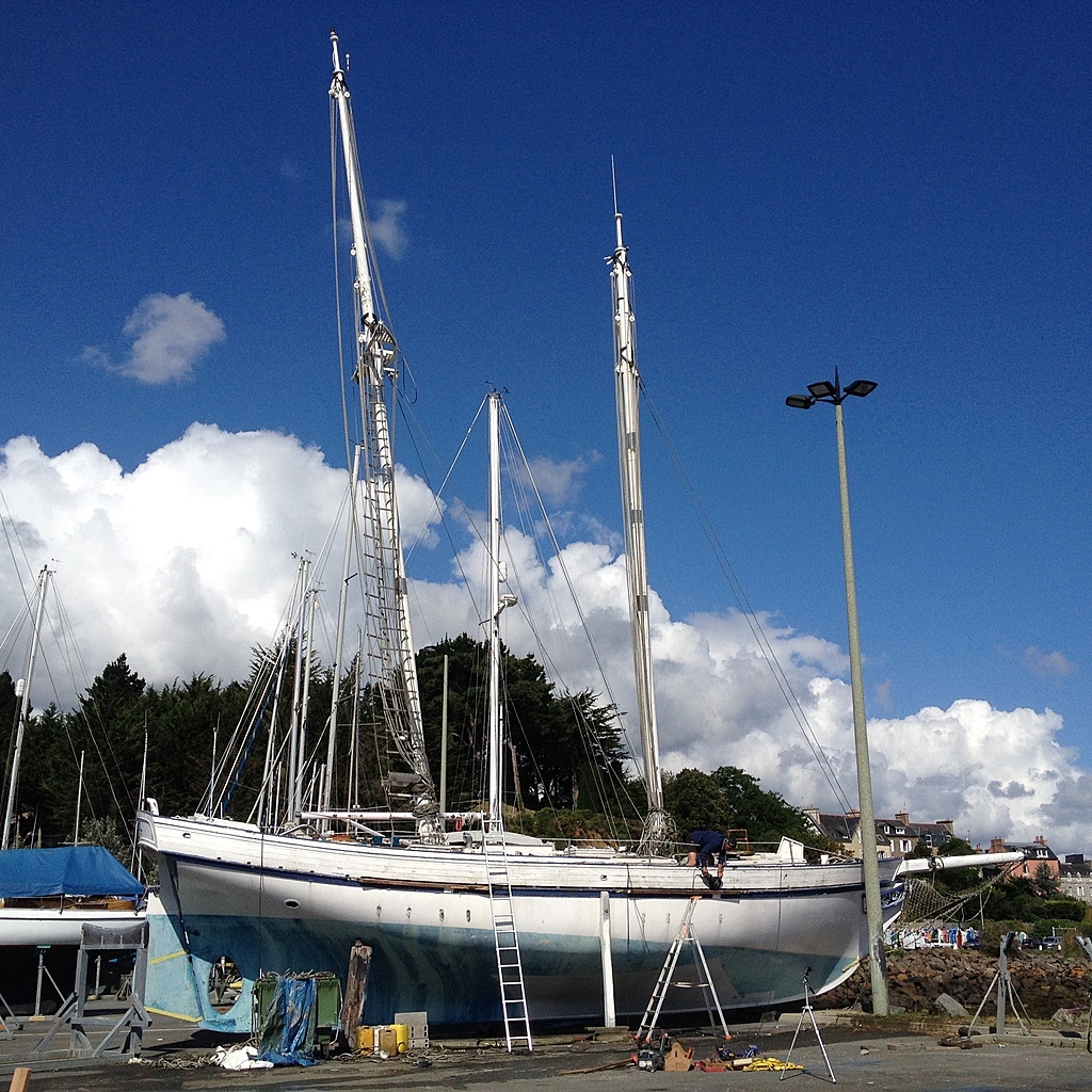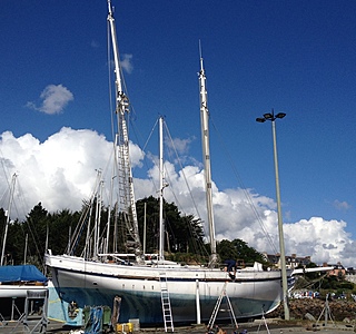le bassin à flot de Binic en recèle un 44 40, gréé en goélette avec son baril de galère sur le roof à la holandaise