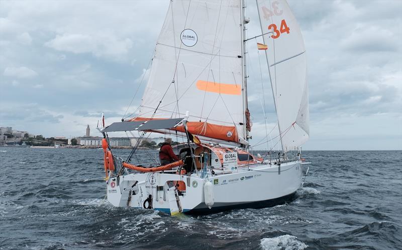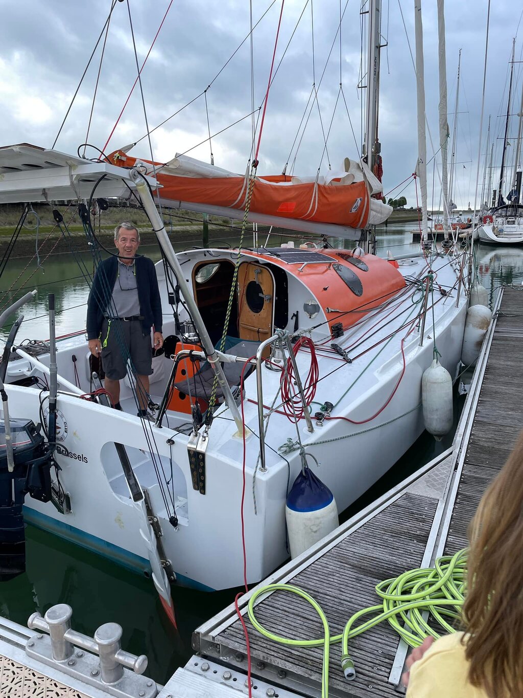 Photo 2, SOLARWIND le jour du départ. Je pensais qu'il irait jusqu'aux îles du Cap Vert pour rentrer ensuite. Puis on a chercher à le faire arrêter au Brésil , pour revenir par la Martinique ...têtu il a continué le rêve.