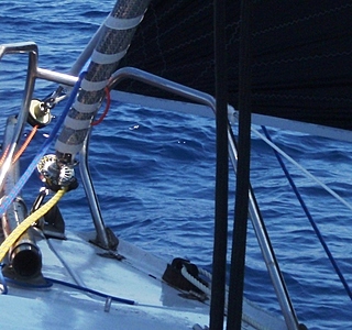 La poulie tout au bout du bout servira à l'amure d'un spi asymétrique, quand j'en aurai trouvé un d'occasion pas trop cher (je chercherai dans les 35 m2... Pour l'instant... on se calme côté porte-monnaie... Les sbires de Flamby au Quai de Bercy nous ont mis à sec... c'est pô la joie à la casa...)