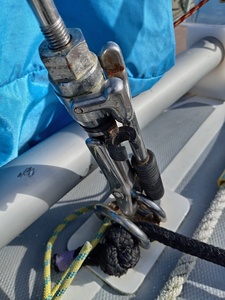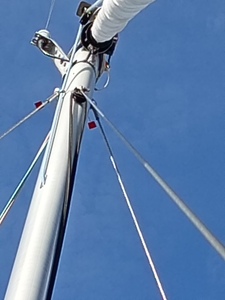 Merci Jean pour les photos du montage de l'étai larguable sous le pont et sur le mat.
