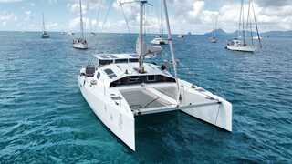 Vu un exemplaire sur l’eau (au port) depuis l’avant : ça en jette. Franc bord enorme, greement oversize… pas mon trip.Chacun ses gouts, avec un tel budget j’irai sur 2 bateaux pour mixer les usages > une luge carbone pour s’amuser à la journée (Saffier ou équivalent), et un croiseur confortable style XC de 45 pieds. Et ça suffit :-)