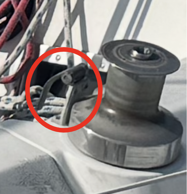 Quant à la patte, ça pourrait être une solution de type Winchlock : un système jamais commercialisé qui permet de plaquer l'écoute contre la poupée du winch et donc de transformer un winch en winch self-tailing