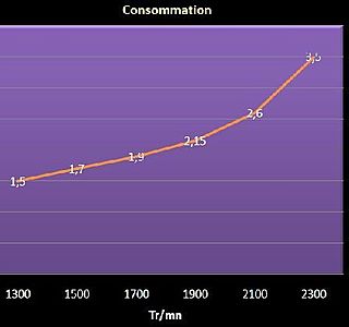 pendant une periode j'ai volontairement utilisé un regime moteur moyen plus elevé 2000 a 2500 trs la conso moyenne est monté a 2,4 l/h.