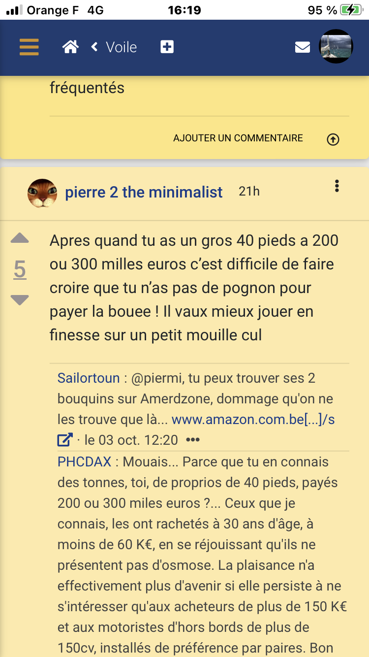 Now:ben voila, c'est pour les plus et les moins, tu n'avais pas précisé dans ton message initial, tu avais juste dis "on ne peu lire les pseudos" donc on savait pas de quoi tu parlais car il y a plein de situations ou les pseudos s'affiches. Donc, il faut cliquer sur le chiffre entre les deux flèches, c'est vrai que sur petit écran tactile c'est moins facile et des fois on mets un plus ou un moins sans faire exprès, mais sur mon tel, ça marche. Quelqu'un d'autre peut il faire le test sur iphone/ipad? freychou?·le 03 oct. 15:57