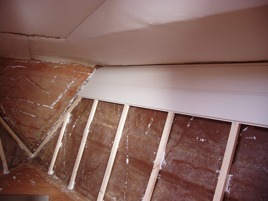 Un petit conseil, l’ancien propriétaire avait peint le plafond, j’ai eu la merveilleuse idée de coller sans poncer, sans enlever la peinture, le tasseau c’est arraché en enlevant la peinture, alors prépare bien le support décape et dégraisse avant de coller.