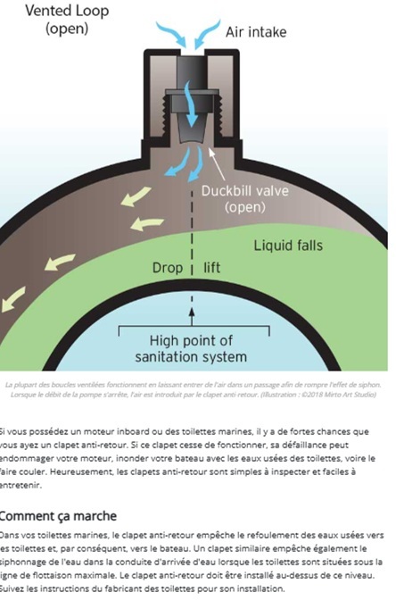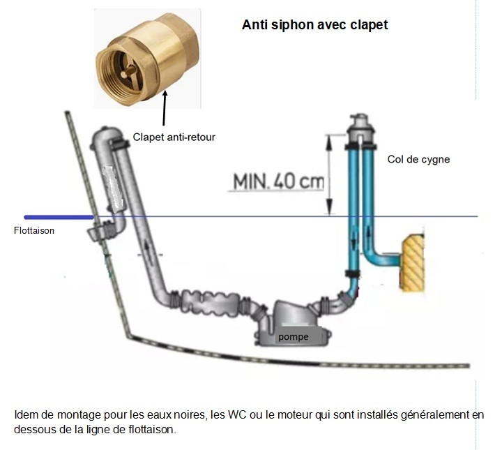 Un des miens a failli se retrouver au fond parce des saletés aspirées par la pompe du RM69 avaient fini par bloquer la valve du casse siphon Vetus que j'avais monté car le WC était en dessous de la flottaison.