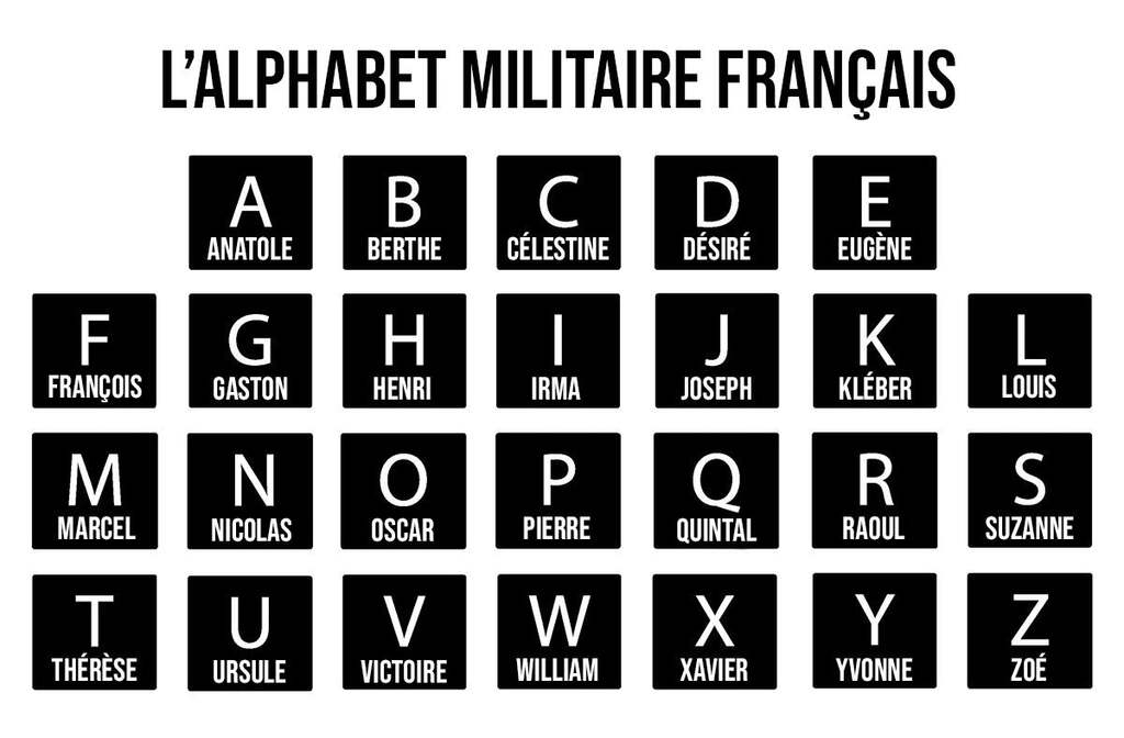 J'avais regardé sur les forums militaires : même les vieux briscards à la retraite n'avaient jamais connu autre chose que l'alphabet NATO.