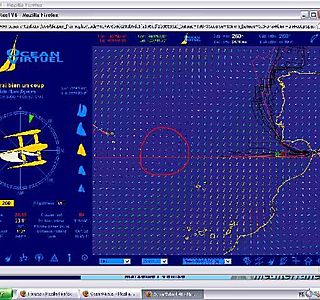 il est passé au milieu des epaves des trimarans de la flotte heo coulé par un ocean virtuel