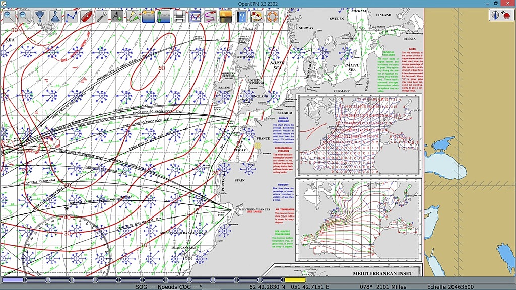 Je voudrais quand même rappeler une nouvelle fois que pour les vents, il y a bien mieux que les pilot charts du milieu du XXe siècle. Bien sûr, pas affichable sur OpenCpn ou ailleurs mais la qualité vaut sans doute un petit effort...