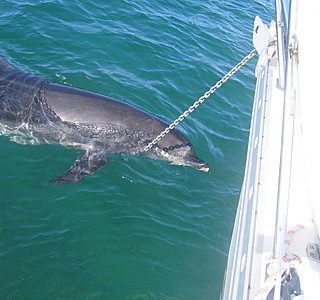 Oui, ça c'est fantastique, ça nous est arrivé et je m'en souviens encore avec émerveillement (en particulier le jeu avec le cata, le long des coques, sous les coques, entre les coques), mais ce jeu dans l'eau avec les dauphins... inimaginable.