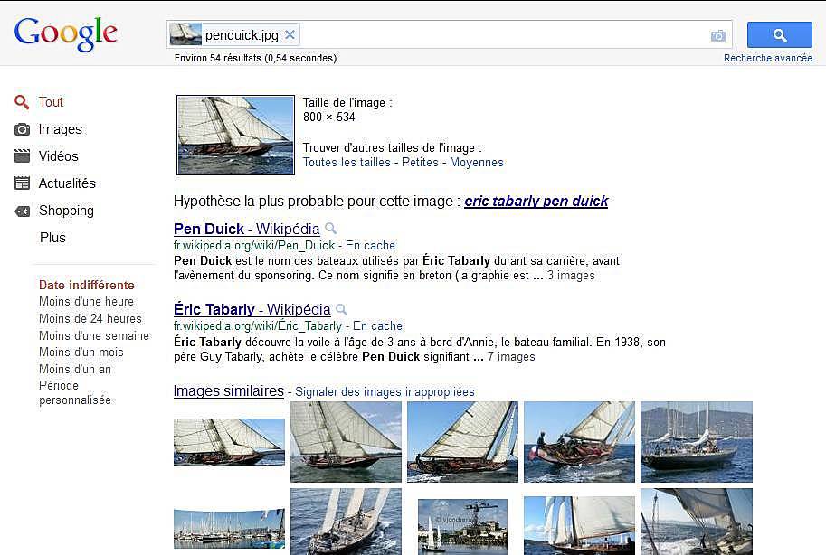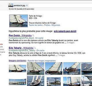 J'ai essayé avec une photo de Pen Duick et ça marche, j'ai obtenu que des liens vers ce bateau célébre et aussi Tabarly ... imprésionant!